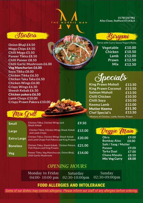 Welcome to The Morris Man, your gateway to authentic Indian and Nepalese cuisine located in Kingston Hill, Stafford. Dive into a diverse menu that caters to all palates, featuring tantalizing dishes like the rich Goat Curry and flavorful Grilled Platter. Each dish is crafted with care, offering an explosion of spices that will transport you straight to the heart of the Himalayas.